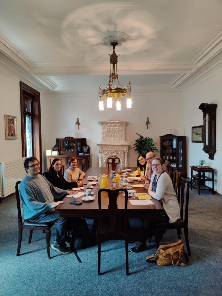 Obr.: Delegace okresu ve složení (zprava vpředu) regionální manažerka Christina Fehmel, vedoucí regionálního rozvoje Detlev Schmidt a Brigida Janner-Acero, kulturní referentka okresu Bayreuth, diskutují o budoucích projektových záměrech s (zleva vpředu) Josefem Švajglem, Danielou Morávkovou a Jaroslavou Peteříkovou.