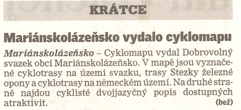 Mariánskolázeňsko vydalo cyklomapu